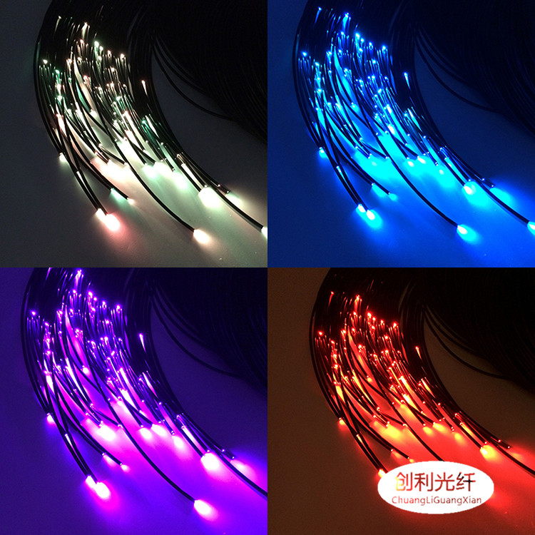 通体光纤由液体高分子化合物聚合而成,采用灌注生产方式,具有导光性强、省电、耐用、不发热、无污染、可弯曲、可色、环境适应范围广、使用安全等特点。光纤的导光方式分为柔美温馨的侧光和熠熠生辉的点光,广泛应用于建筑物装饰照明、文物工艺品照明、景观装饰照明、特殊场合照明、广告牌、娱乐场所等各种装饰工程。